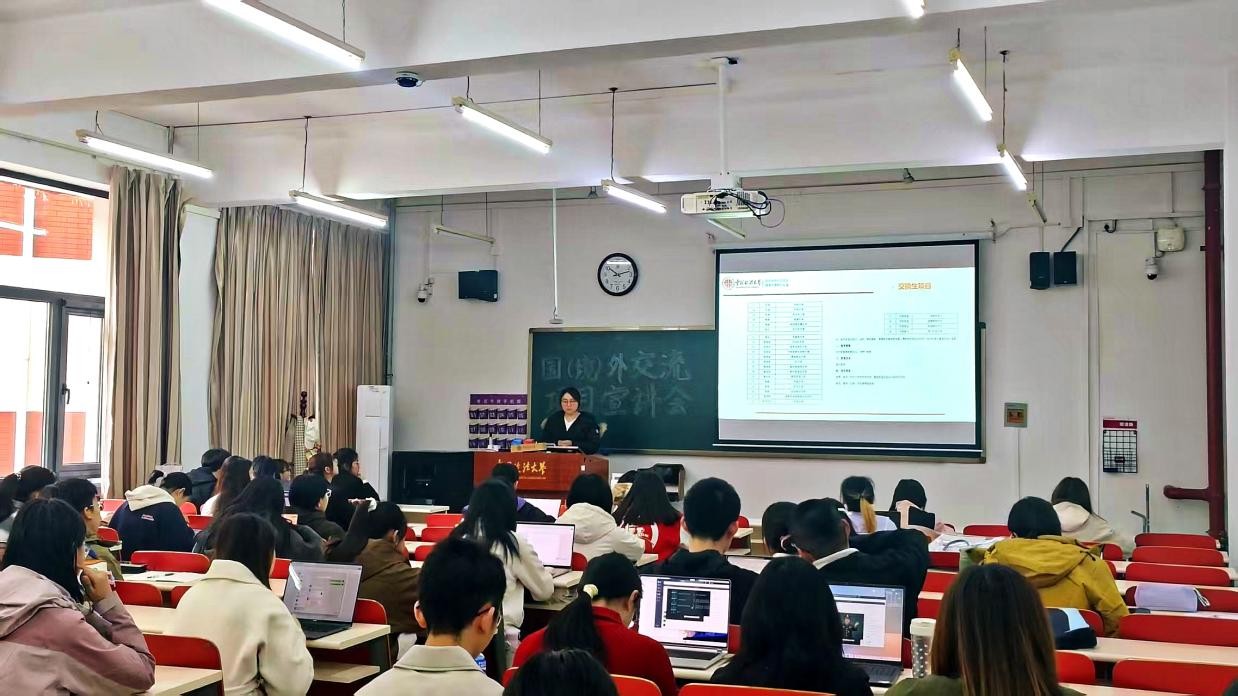 2025年10月24日9:30,yl23455永利官网/涉外法治学院联合国际合作与交流处在昌平校区端升楼104举办赴国(境)外交流项目宣讲会。活动面向学校“涉外法治人才培养”战略需求,百余名本科、研究生现场参与。宣讲会由国际合作与交流处项目科科长张雨晨主讲。